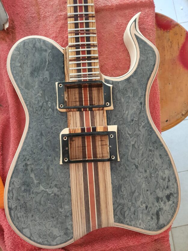 https://www.earthtonepedals.it/wp-content/uploads/2021/07/video-IGL-Earth.mp4 Descrizione Neck thru legno wenge, padouk e zebrano compreso la tastiera Ali in acero canadese top in radica Manico 24 tasti scalatura Fender Tasti medium jumbo 2 pick-up Mama con volume e tono più push-pull Meccaniche Sperzel autobloccanti Ponte Gibson style Laccatura IGL TM